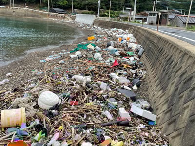漂着する海洋プラスチックの多くは、外から流れ着いた物です。